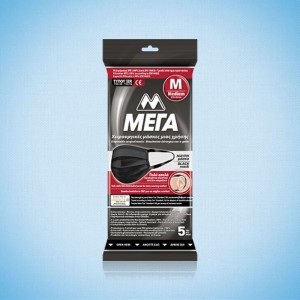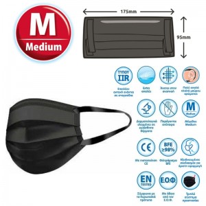 ΜΕΓΑ Χειρουργικές Μάσκες Μιας Χρήσης Τύπου ΙIR, Μαύρες, Medium
